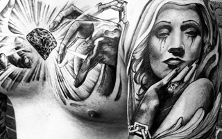 Owner & tattooist at Life & Death Tattoos. John Lewis specialises in black & grey tattoos, portraiture, realism & skull. A lover of creative art work, original interesting ink work.